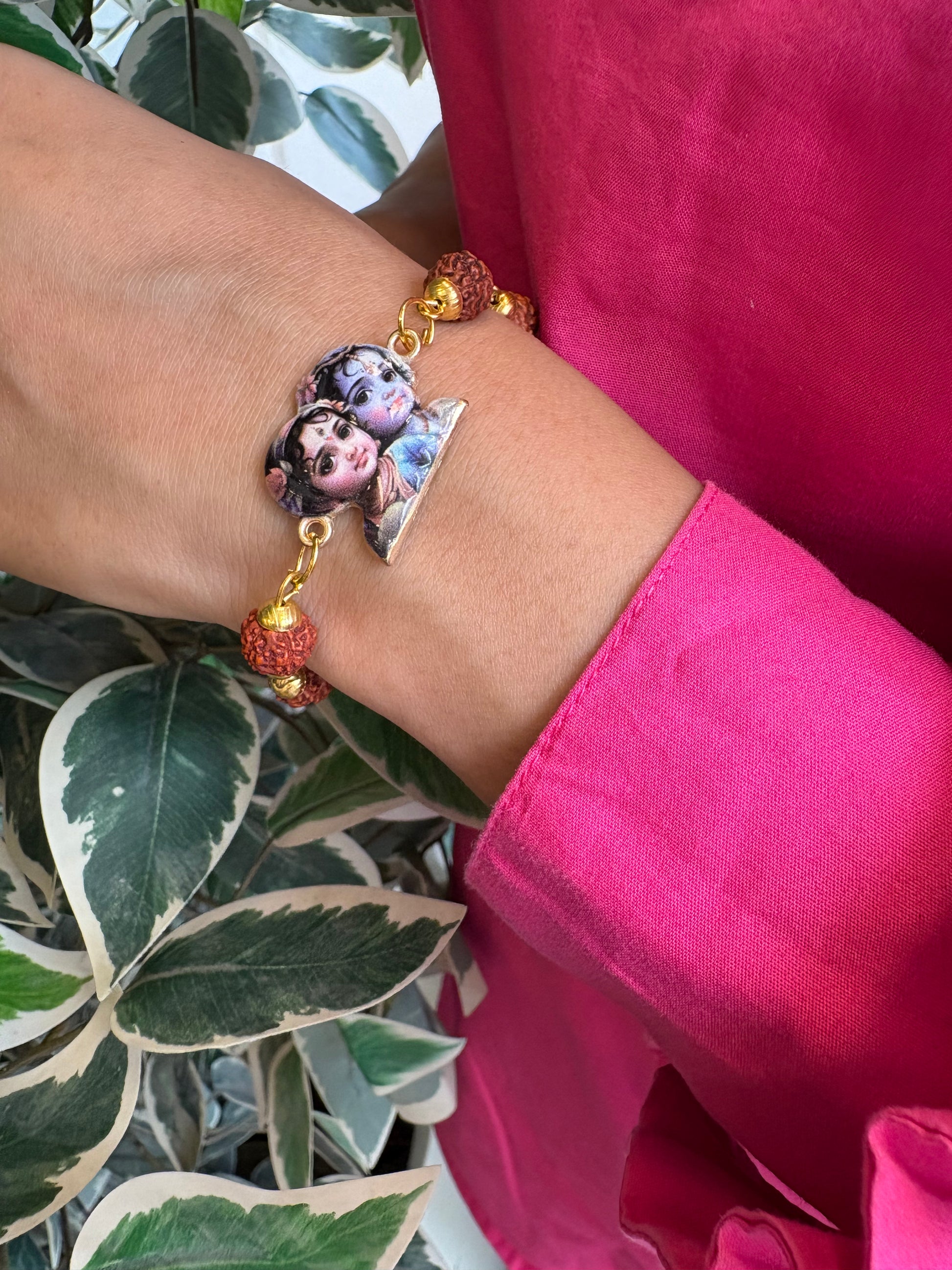 This Baby RadhaKrishna charm from Kiwibymusskan is a must-have for your little one. It features a unique bracelet design, making it versatile as both a bracelet and a rakhi. The perfect way to add a touch of cultural charm to any outfit.