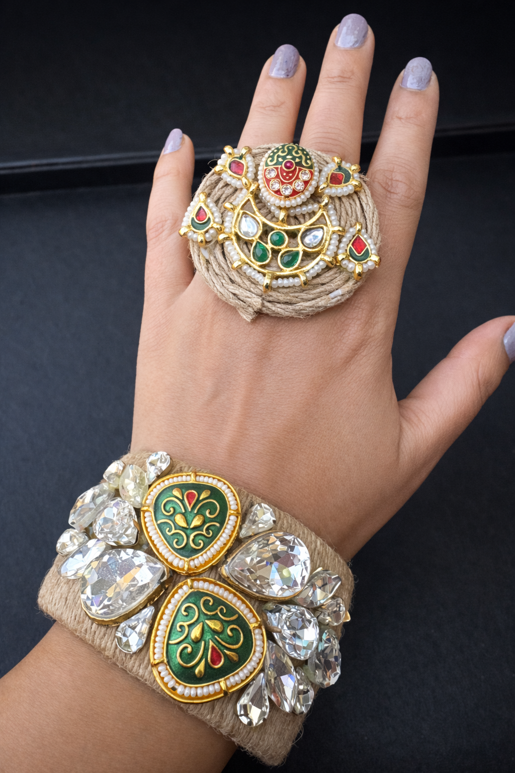 Style up in kiwibymusskan statement handmade jute combo of handcuff and ring .