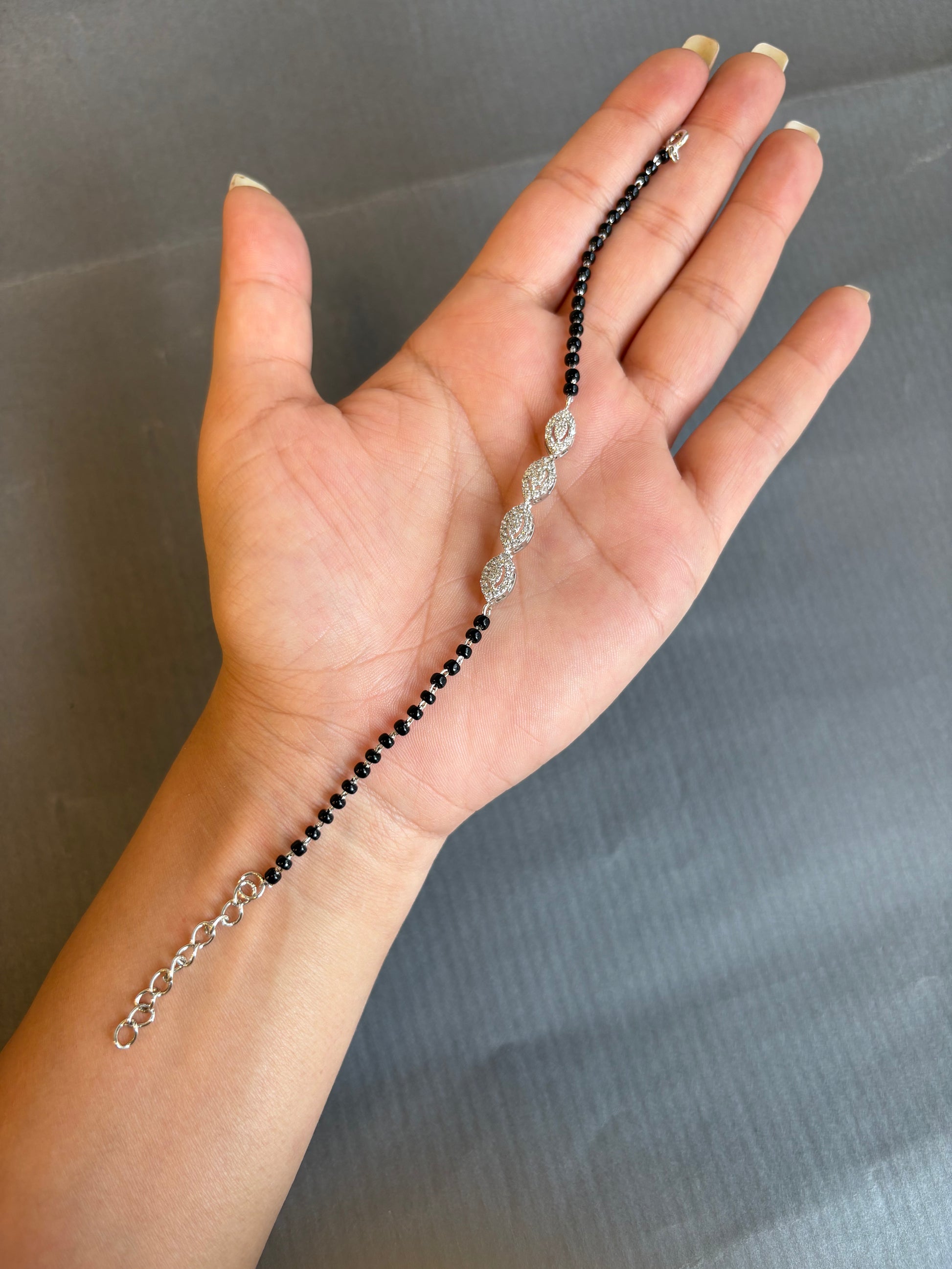 Discover the elegance of our Mangal sutra bracelet, expertly crafted in 925 pure silver. Get the perfect blend of style and tradition with this exclusive piece, only available at Kiwibymusskan. Elevate your look and add a touch of sophistication to any outfit.