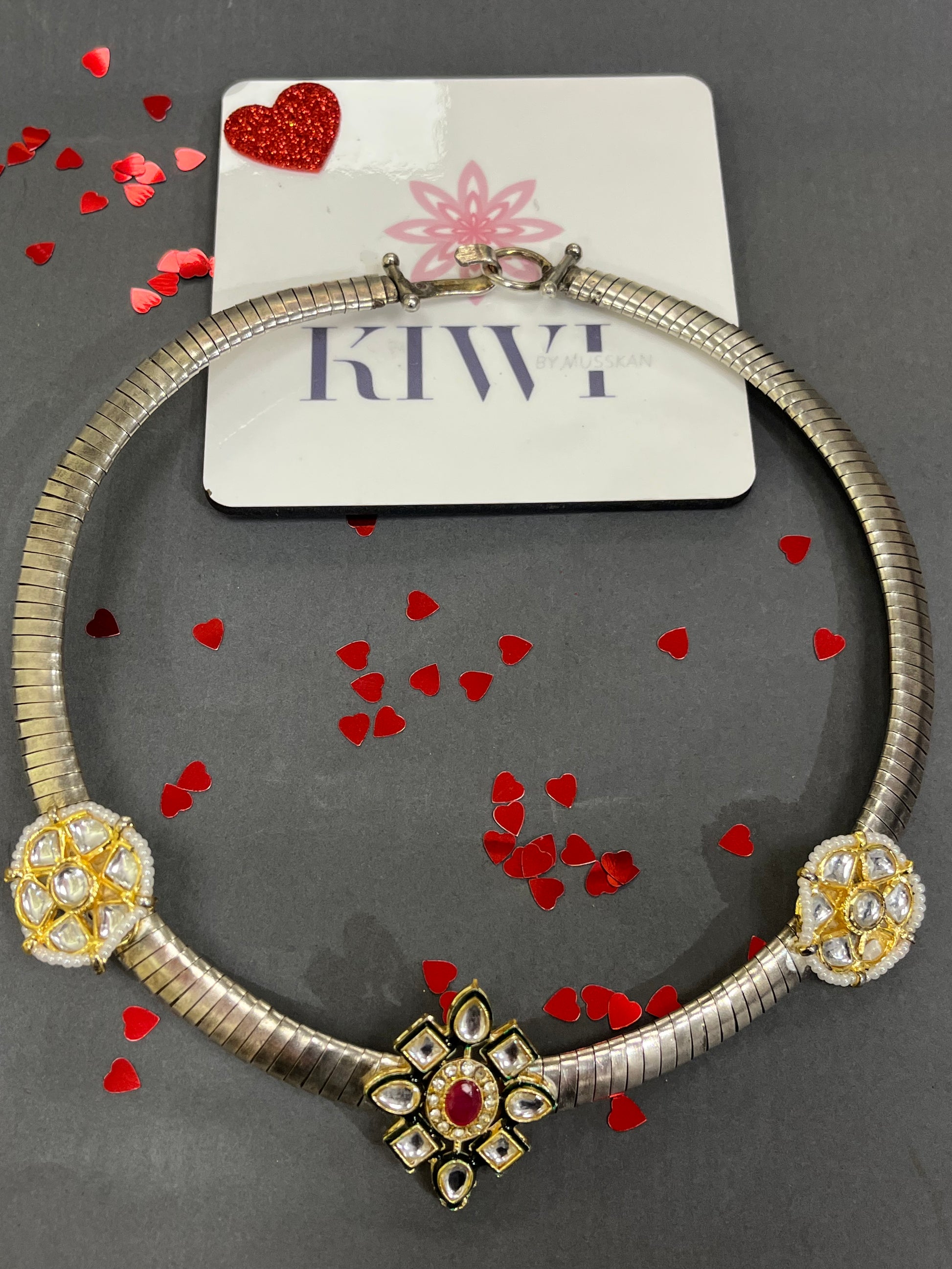 Silver kundan Hasli